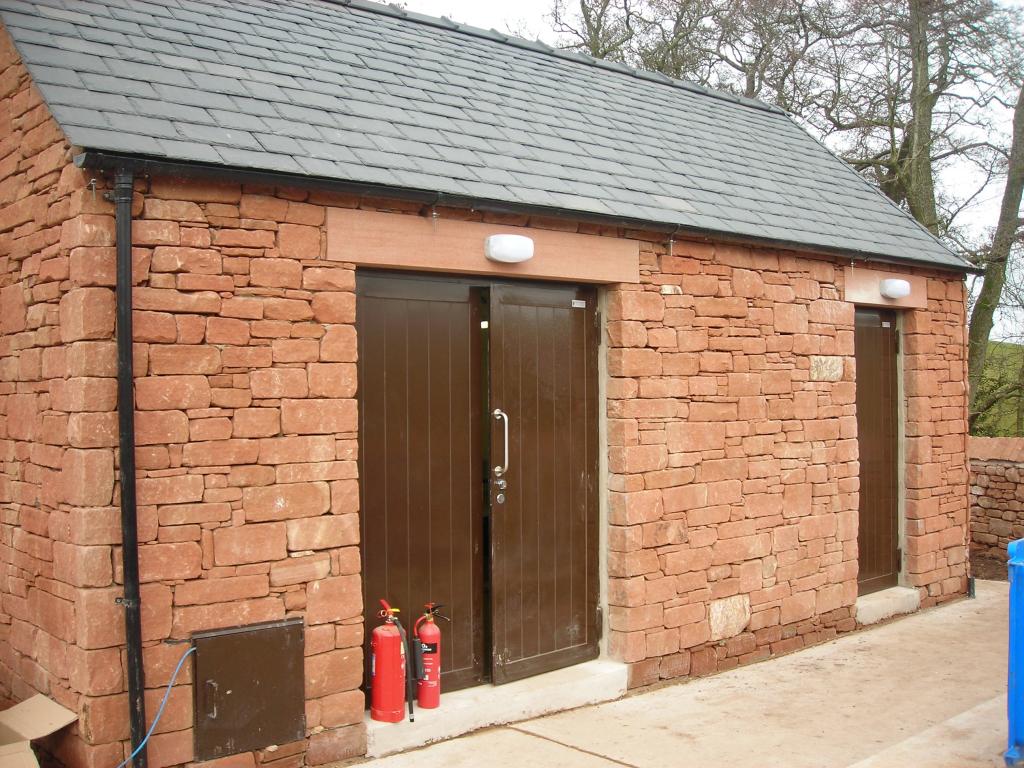 This newly built pumping station and surrounding walls at Newton Reigny have been built using Lazonby Red Sandstone. Our craftsmen have raked back the pointing on the masonry to achieve a ‘dry’ look.
